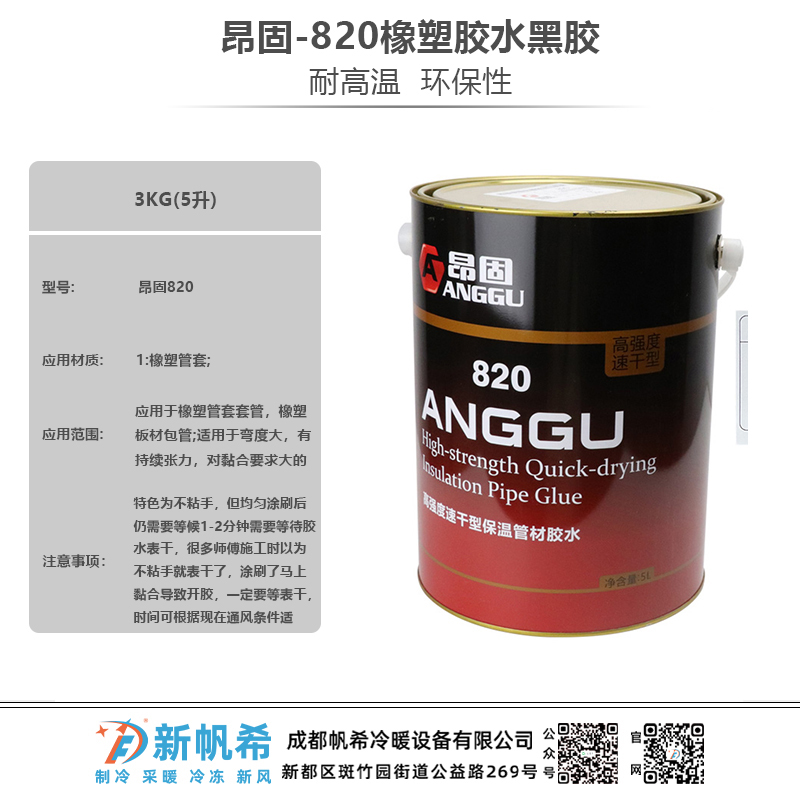 昂固-820橡塑胶水3KG(5升)黑胶