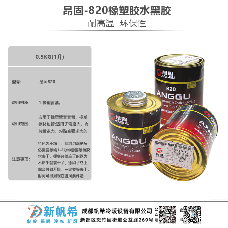 昂固-820橡塑管材专用胶水8.5KG(15升)黑胶